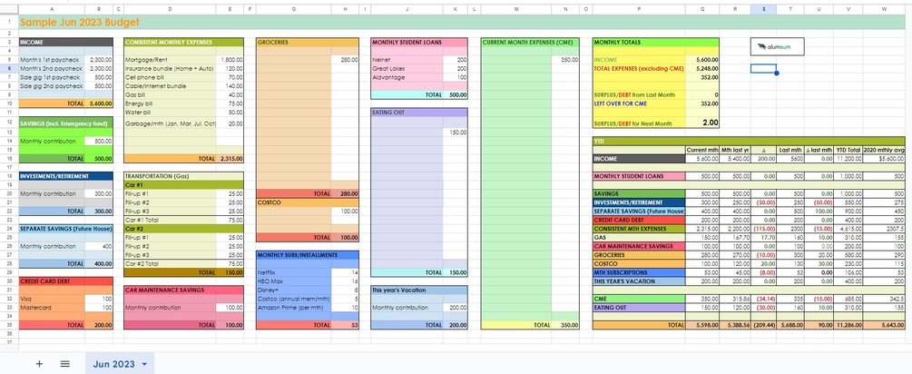 Monthly Budget Template - AlumSum